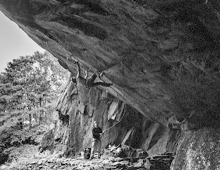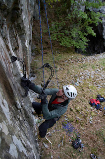 The next 2 routes are on the slabby wall left of the cave.